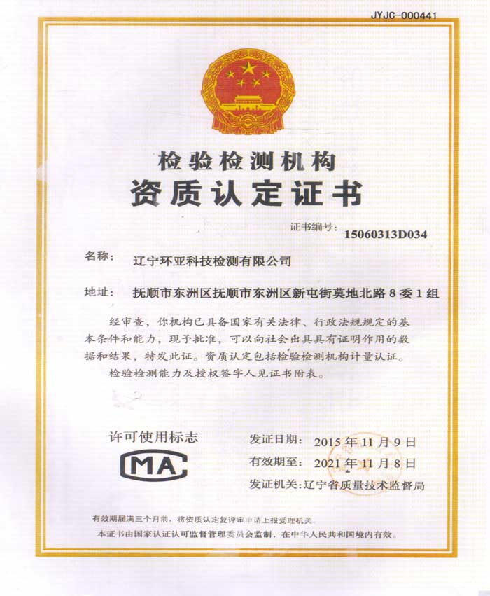 檢驗檢測機(jī)構(gòu)資質(zhì)認(rèn)定證書